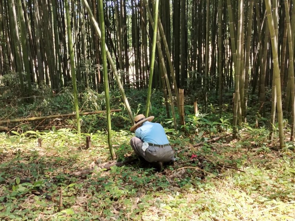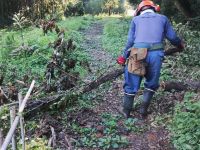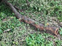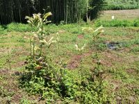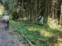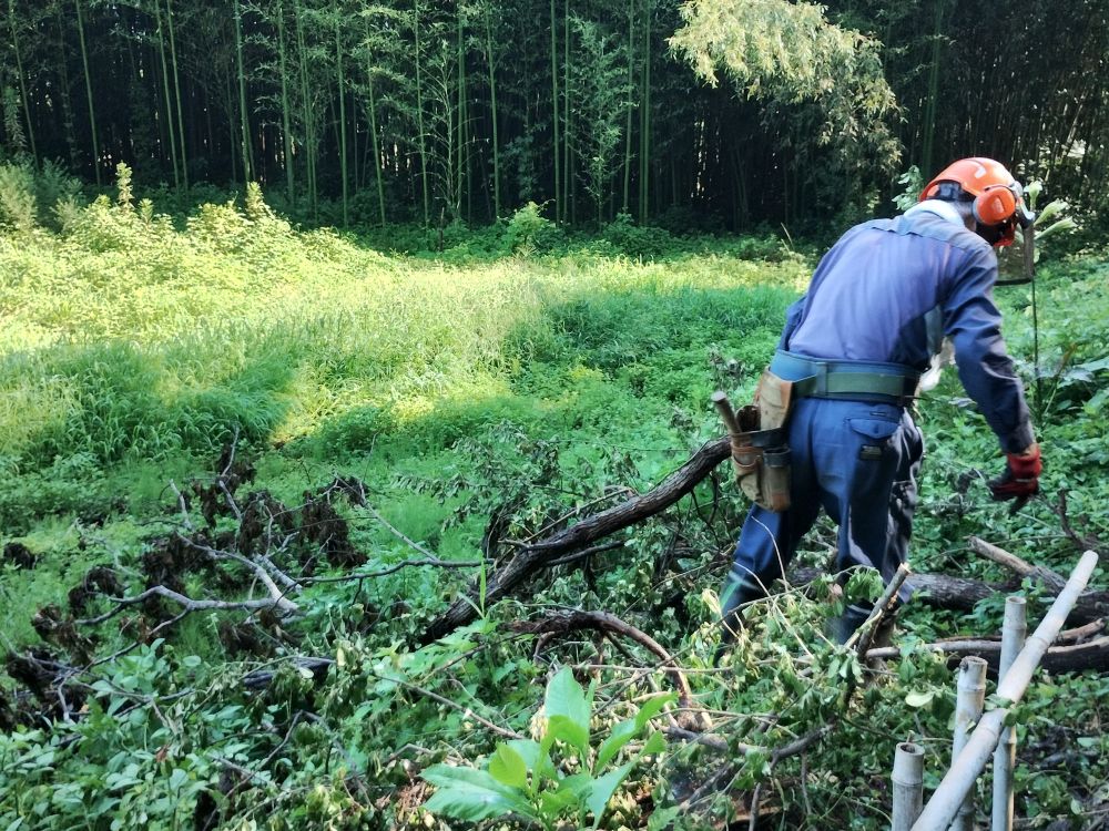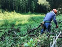 ・平日活動日(07月23日) 2025年7月23日 最終更新日時 : 2025年9月6日 wordpress_blog 7月23日(水)の平日活動日に5名の会員と協賛企業よりの助っ人1名が中央広場に集まりました。この日も早朝より気温が高く、更に無風ということで大変蒸し暑い状況でした。数日前に活動エリア内のあぜ道上に倒れ込んだ倒木の撤去作業を行いましたが、いたるところに同様の倒れそうな木が点在しており、今後は危険そうなものから順に処理することにしました。地域内ではウバユリをはじめとする夏の花が沢山咲き出している時期なことから、連日続いている猛暑に苦しみながらも季節を楽しむことができています。