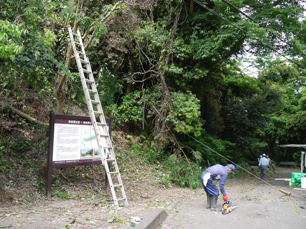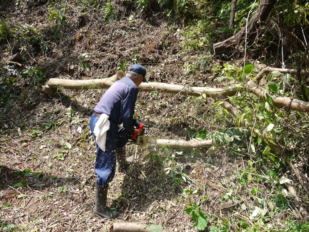 ・平日活動日(5月25日) 2022年5月25日 最終更新日時 : 2022年6月20日 wordpress_blog 快晴の天気に恵まれた平日活動日は9名の会員と賛助会員企業から6名の応援が加わって、枯竹の粉砕処理と国道入口の大看板の上にある電線に絡まった木の枝を撤去する班に分かれて作業を行いました。枯竹の粉砕処理は8日の作業終了後にメーカー代理店に依頼した刃研ぎを行ったこともあり、終始順調なものとなり予定箇所に運び出してあった分が終了しました。これで明日予定されている活動区域内のドローンによる動画撮影と、午後予定されている会長への取材に対する準備が整いました。